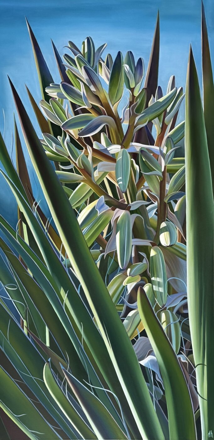 The agave get all the attention in this area, but there’s a nice crop of yucca that demands closer examination. The flower pendants gobble up the late day light, and the curly leaf fibers swirl in shades of blue. This plant has so many uses; you can make shampoo, roast the fruit for food, make rope or baskets from the fibers, and create beautiful dye.